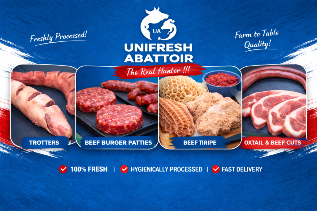 At Unifresh Abattoir, we deliver premium, farm-quality meat straight to your table. From tender beef cuts to perfectly prepared portions, every order is handled with care, precision, and freshness you can trust.